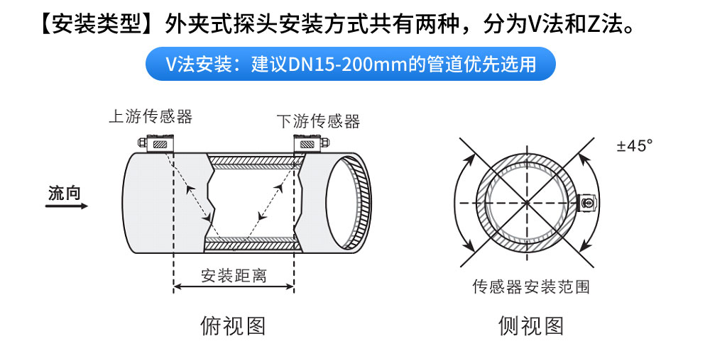 外夾壁掛式超聲波流量計利用了低電壓,多脈沖時差原理