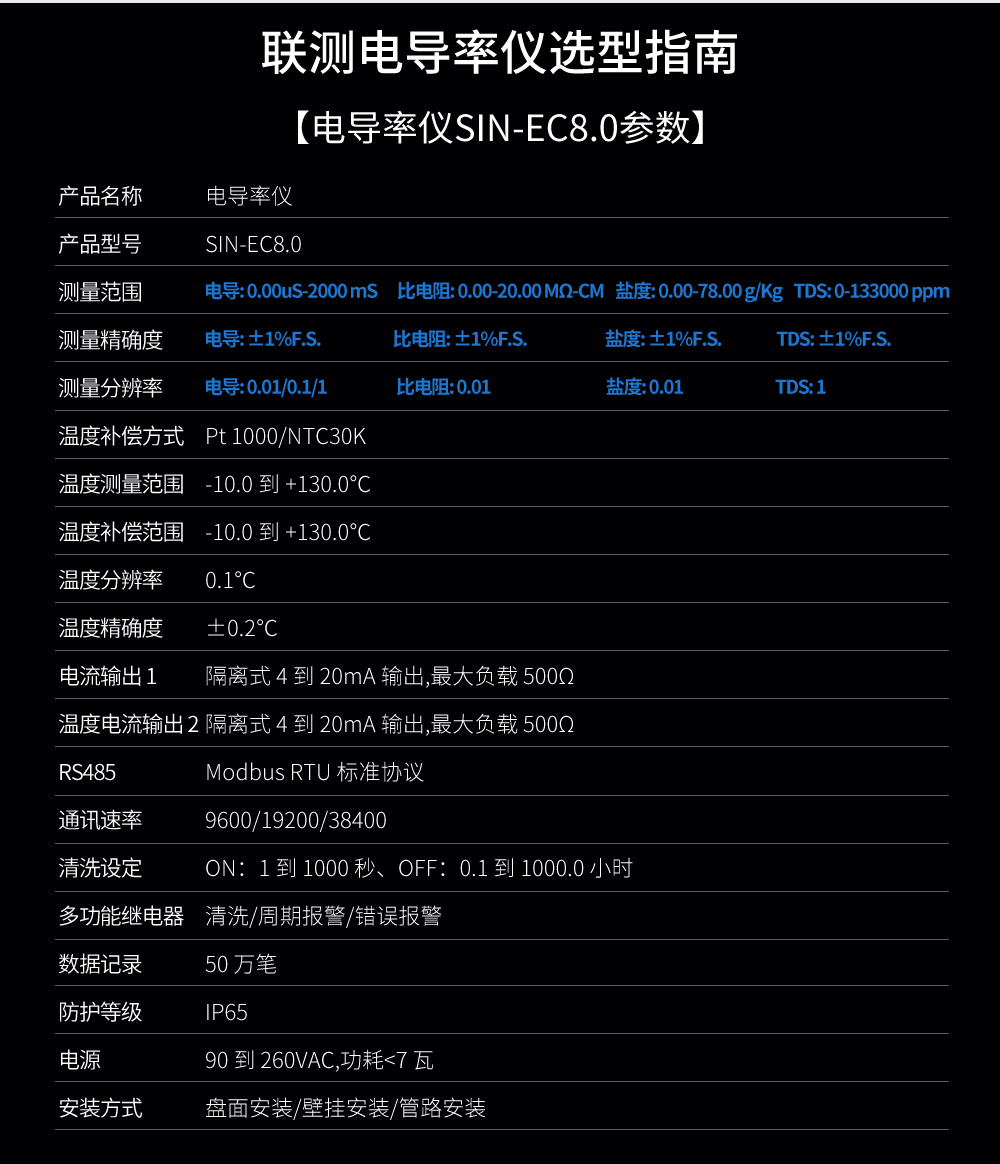 您的位置: 首頁 > 電導率儀 >聯測_SIN-EC8.0在線電導率儀_RO過程_水處理_CIP清洗_海水淡化
