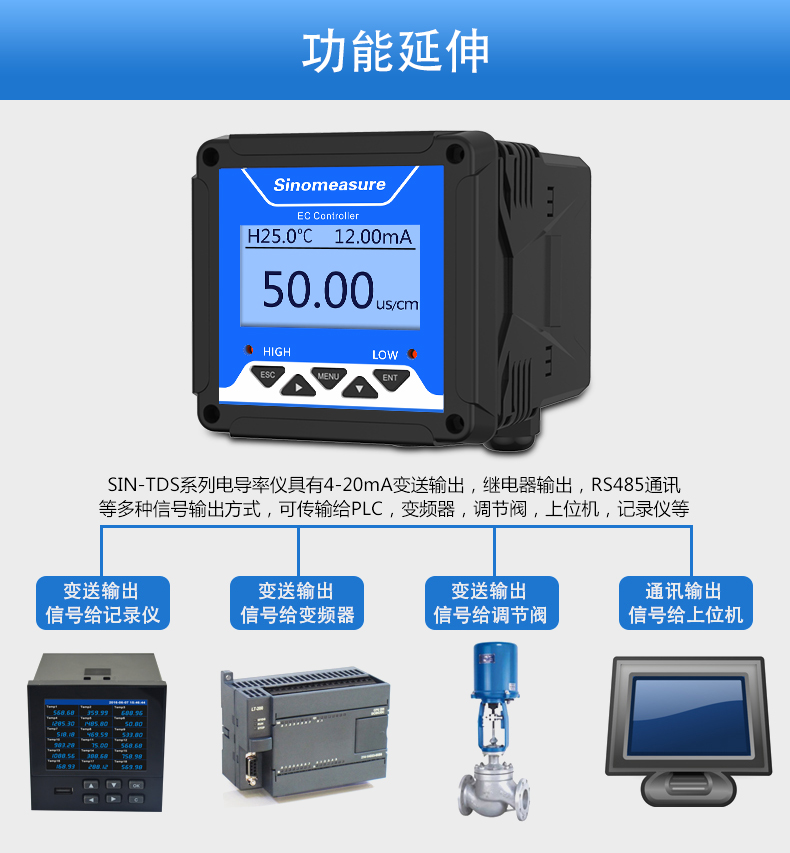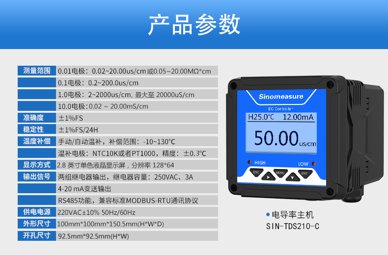 SIN-TDS210-C工業(yè)電導(dǎo)率儀表,廣泛應(yīng)用于火電、化工化肥、冶金、環(huán)保、制藥、生 化、食品和自來水等行業(yè)。控制器主要對溶液中的電導(dǎo)率/總?cè)芙夤腆w/ 電阻率和溫度進(jìn)行連續(xù)監(jiān)測。