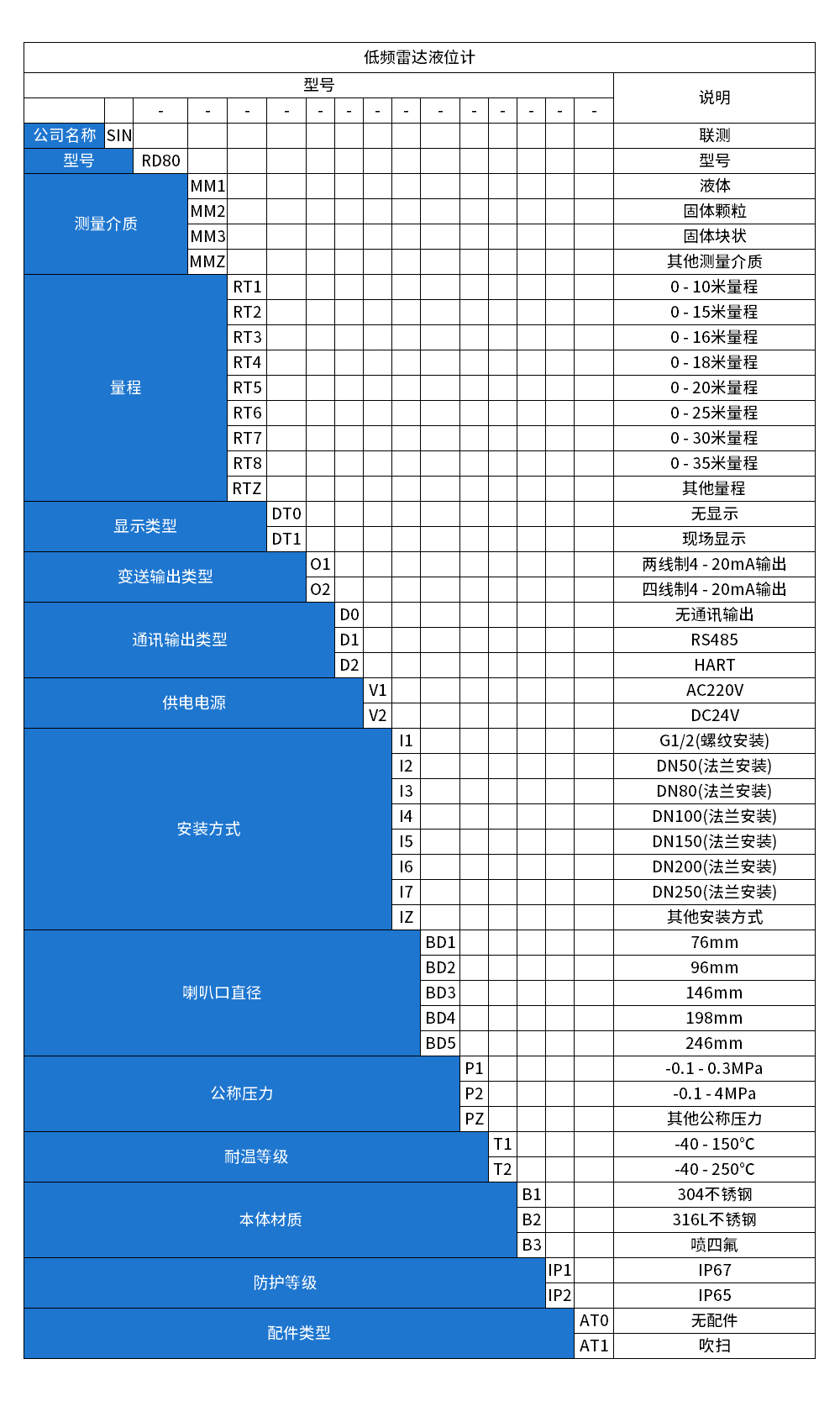 您的位置: 首頁 > 雷達液位計 >聯測_SIN-RD801雷達料位計_適用于液體,微腐蝕性液體_