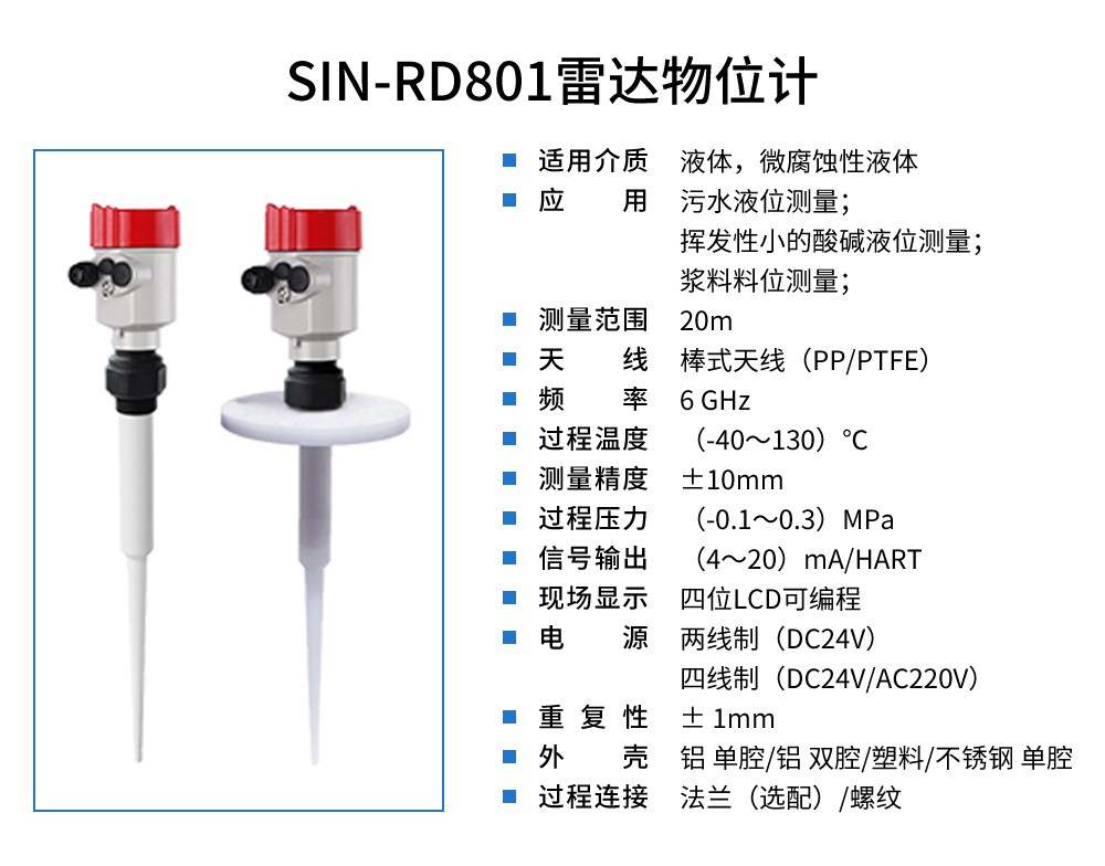 聯測_SIN-RD801雷達料位計_適用于液體,微腐蝕性液體_