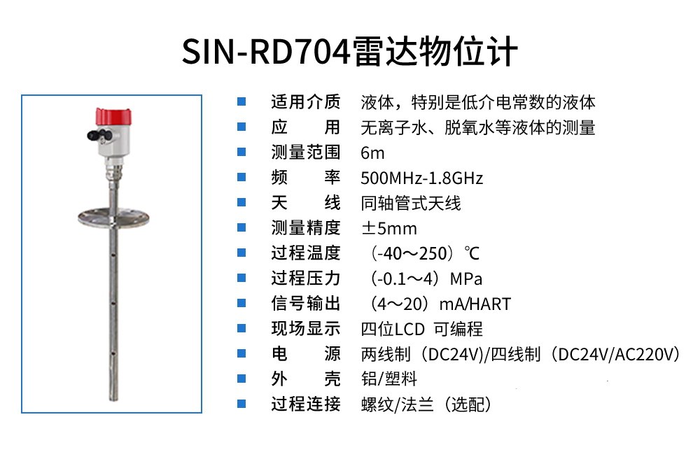 聯(lián)測_SIN-RD704雷達(dá)液位計_適用于無離子水、脫氧水等液體_