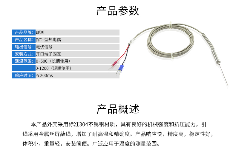 探針式鎧裝熱電偶,由于其較細(xì)的直徑和快速響應(yīng)能力,在局部測溫領(lǐng)域, 有著無可替代的作用。可與記錄儀、溫控儀等一系列配套儀表鏈接,達(dá)成較好的測溫效果。