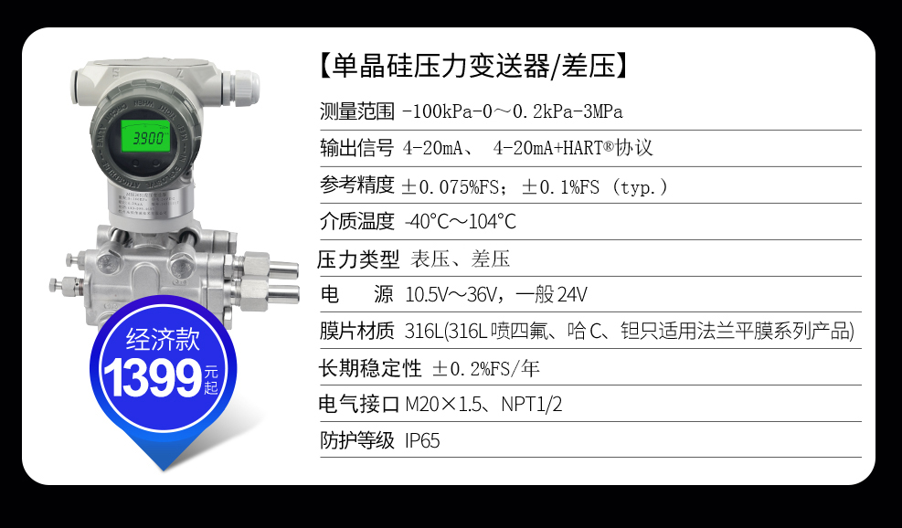 SIN-P2051G差壓安裝式表壓/絕壓變送器用于測量液體、氣體或蒸汽的液位、密度、壓力,然后將其轉變成4~20mADC HART電流信號輸出