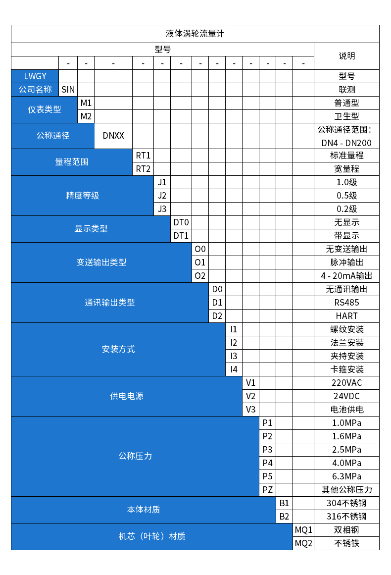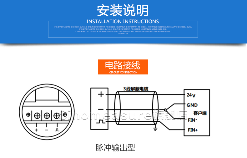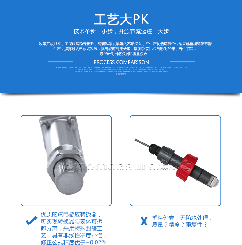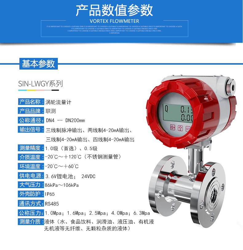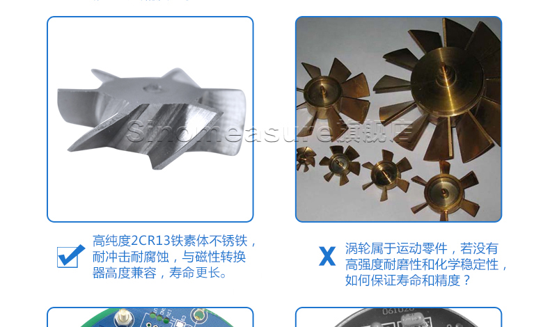 流體流經(jīng)傳感器殼體,由于葉輪的葉片與流向有一定的角度,流體的沖力使葉片具有轉(zhuǎn)動力矩,克服摩擦力矩和流體阻力之后葉片旋轉(zhuǎn),在力矩平衡后轉(zhuǎn)速穩(wěn)定,在一定的條件下,轉(zhuǎn)速與流速成正比,由于葉片有導磁性,它處于信號檢測器(由永久磁鋼和線圈組成)的磁場中,旋轉(zhuǎn)的葉片切割磁力線,周期性的改變著線圈的磁通量,從而使線圈兩端感應(yīng)出電脈沖信號,此信號經(jīng)過放大器的放大整形,形成有一定幅度的連續(xù)的矩形脈沖波,可遠傳至顯示儀表,顯示出流體的瞬時流量或總量。