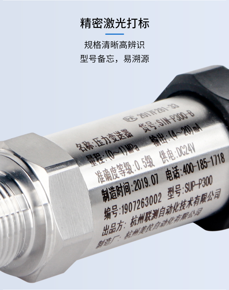 SIN-P300通用型壓力變送器德國進口硅芯片,精度高性能穩定;SIN-P300型通用型壓力變送器采用擴散硅壓力芯體作為敏感元件,內置處理電路將傳感器毫伏信號轉換成標準電壓﹑電流信號輸出,可直接與計算機、控制儀表﹑顯示儀表等相連。選用高穩定性和高可靠性的壓阻式壓力傳感器和高性能的變送器專用電路,整體性能穩定可靠,可進行遠距離信號傳輸。采用一體化全不銹鋼結構,經過多次不銹鋼焊接,實現了全固態設計,安裝方便,具有高抗振性和抗沖擊性,在惡劣環境中可以長期使用。廣泛應用于工業自動化設備配套以及石油、化工、冶金、電力等控制領域。