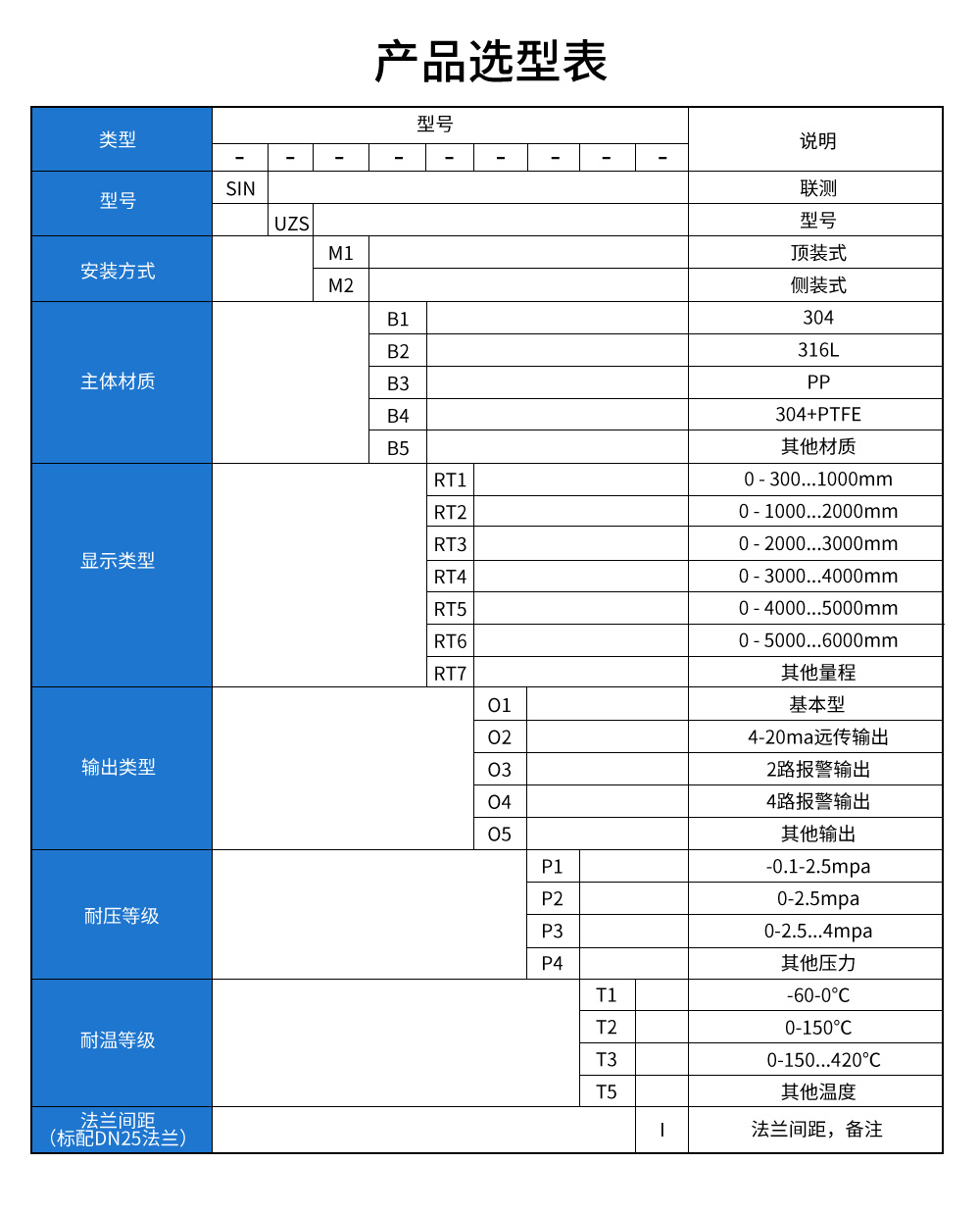 液位變送器由傳感器和電流轉換器兩部分組成,其傳感器部分安裝 在液位計指示器內(內置式)或不銹鋼保護管內(捆綁式),使其與磁 性液位計處于同一磁耦系統中,當液位上下波動變化時,其磁性浮子傳 感器內的干簧電阻矩陣中的干簧管,不斷地吸合或釋放,從而導致傳感 器矩陣的輸出電阻值發生變化,其變化的阻值與液位的變化值成對應的 線性關系,也就是液位的變化轉換成電阻的變化,并通過電流轉換模塊 將電阻變化轉換成 4~20mA 電流變化。